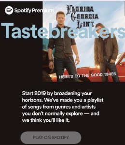 Spotify makes this playlist too to broaden your musical horizons. Putting Florida Georgia Line as the artist I should listen to is the reason why I don’t give different music a chance. They stink, and it’s a shame that I won’t even bother seeing what else is on that playlist because of it.