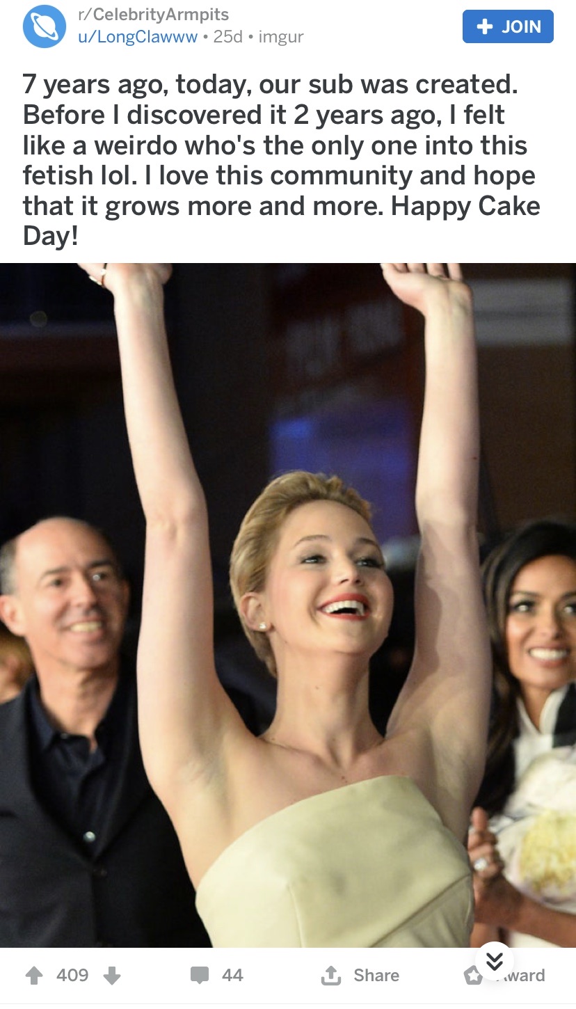 I’ve made my love for Reddit very well known in this blog. Whenever news breaks, I go to Reddit to see the discussion on a given topic. Hell, it has its own section in my weekly blog series that recaps the week. It’s way less toxic than that Luciferian political echo chamber that Twitter has become. The Reddit life isn’t for everyone though, it’s important as you lurk on different subreddits that you remember that 95% of everybody on that website is a giant fucking weirdo. But one thing that makes Reddit nice is its sense of community; there is a subreddit for everything. Nothing proves this more than the r/celebrityarmpits, which is, you guessed it, just pictures of various pictures of celebrity’s armpits.